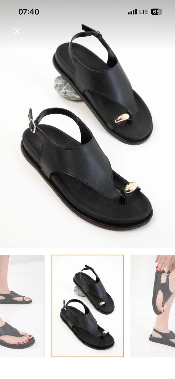 Siyah, minimal tasarımlı kadın sandalet. Tokalı detay içerir. Günlük kullanıma uygundur.