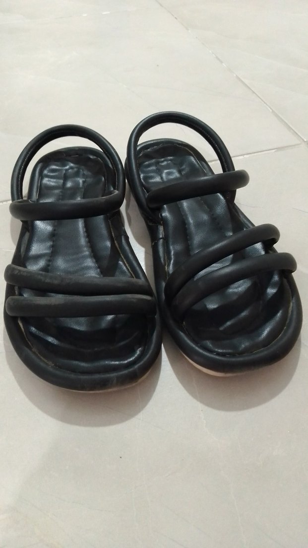 Siyah bantlara sahip kadın sandaletleri, kauçuk malzemeden üretilmiş, minimal goth tarzında günlük kullanıma uygun. 38.39 ii olur