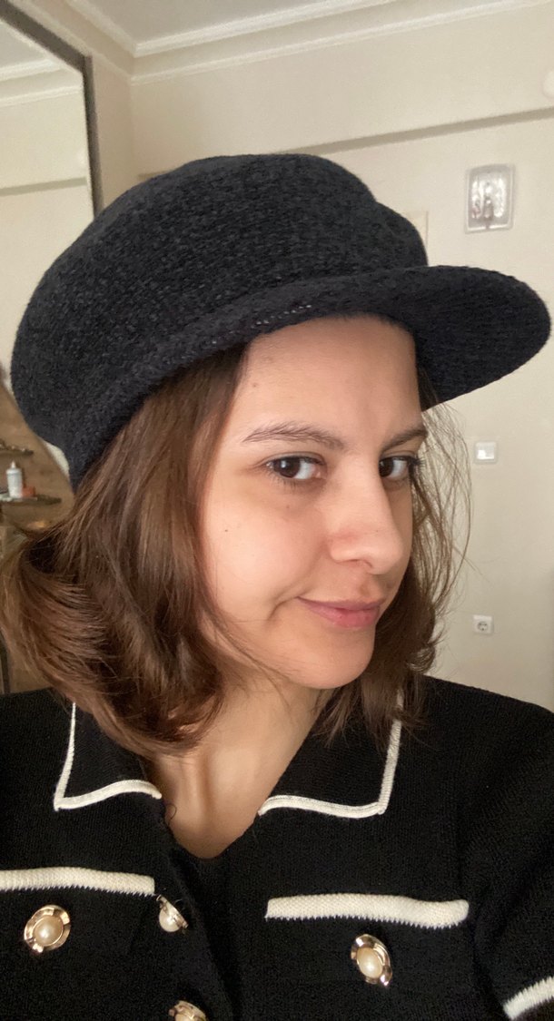 bu kadın şapka, Parisli karşı kültür tarzıyla sade ve şık bir görünüm sunar.
