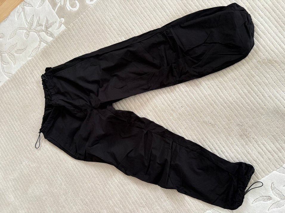 Saten kumaştan yapılmış, fermuar detaylı, siyah renkli, midi boy, dar kesim kadın pantolonu, dış mekan kullanımı için uygundur.