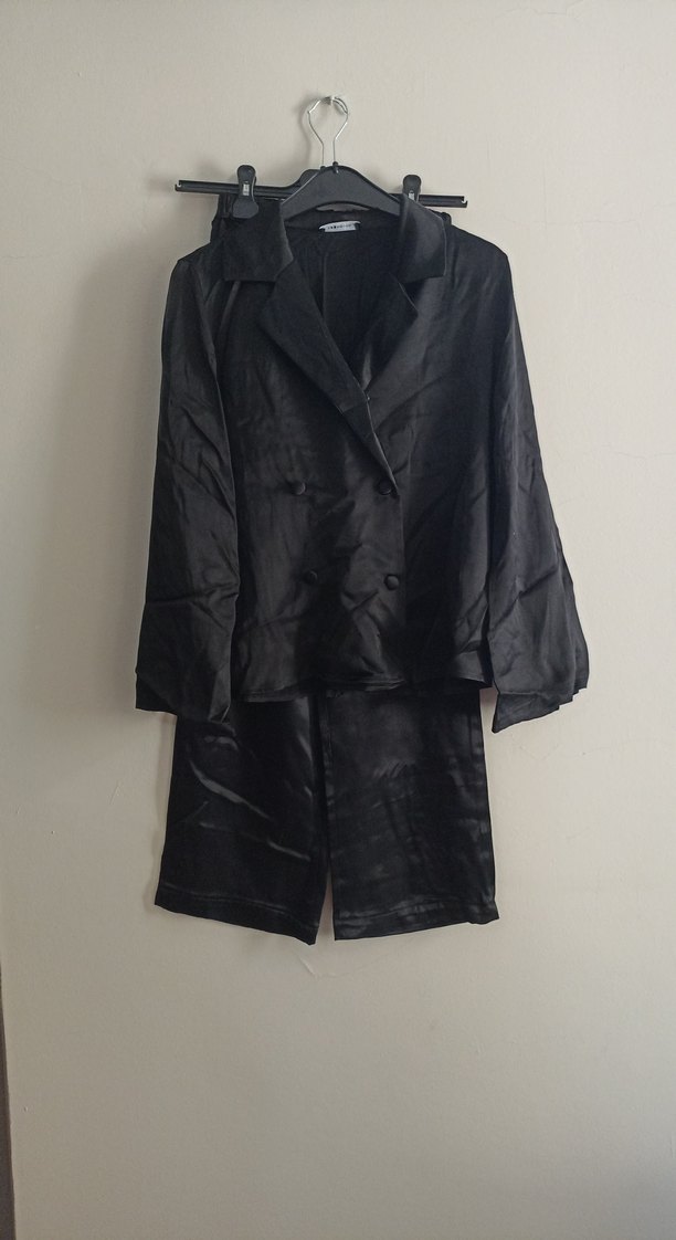Siyah, ipeksi dokulu kadın takım pijamaTakımı