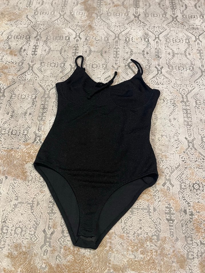 Siyah Kadın Simli Bodysuit