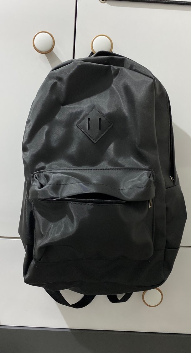 Siyah, sentetik kumaştan yapılmış, kadın sırt çantasıdır. Günlük kullanıma uygundur ve desensiz sade bir tasarıma sahiptir.