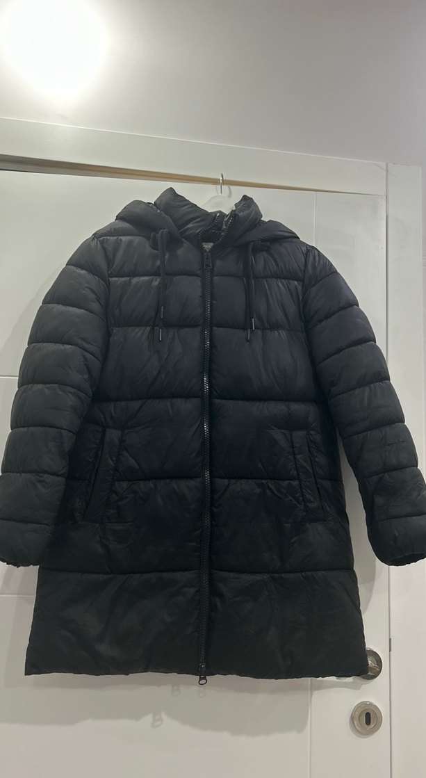 Siyah renk, orta uzunlukta kadın mont, yumuşak ve sıcak kumaştan üretilmiş. Strappy kollu, yakası kesimli ve kapüşonunda kürk detaylı, dış mekan kullanımı için uygun. 36 beden ama 80 kilo iken bile tam oluyor 40 ve 42 bedene kadar tercih edilebilir