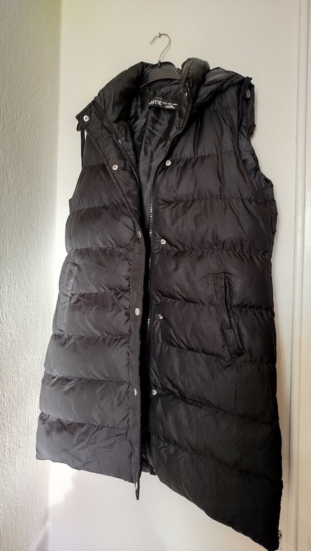 Az kullanıldı Herhangi bir defosu yok Yüksek yakalı siyah kadın yelek. Sentetik kumaştan,. Günlük kullanıma uygun rahat bir parça.