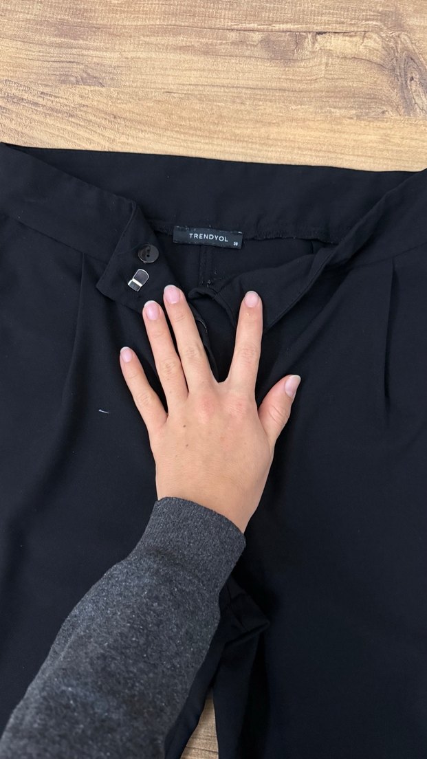Yumuşak ve sıcak kumaştan yapılmış siyah kadın pantolon, Velcro kapanışlıdır. Tasarımı sade, temel stil ve gotik etkisi taşır. Marka: TRENDYOL.