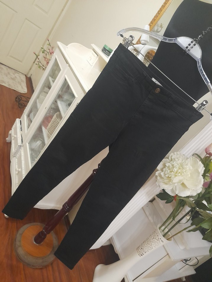 Siyah denim kumaştan, regular fit ve tokalı detaylı kadın skinny pantolon. desensiz ve günlük kullanım için uygundur. #pantolon #denimpantolon #defacto #annasuperskınny siyah pantolon yumuşak esnek kumaş regi koyu siyah ışıkta tam çıkmadı bel 38 ağ belden birleştirip ölçüm 30 basen 44 boy 93 paça 11 kaliteli temiz şık rahat üründür beden aralığı var ölçülere bakıp alın lütfen #mavi #zara #mango #batik #hm #bershka #stradivarius #vakko #ipekyol #twist #koton #altgiyim