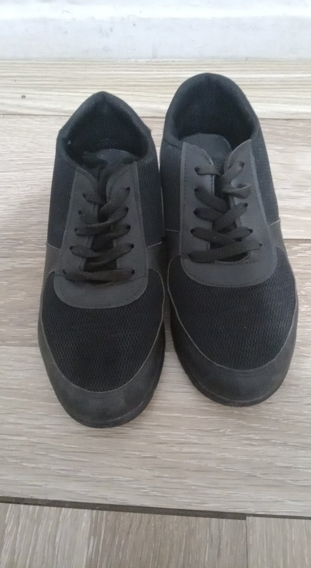 Siyah renkte, kauçuk tabanlı kadin spor ayakkabısı. Desensiz tasarımıyla spor ve günlük şıklık için uygundur. ♂️