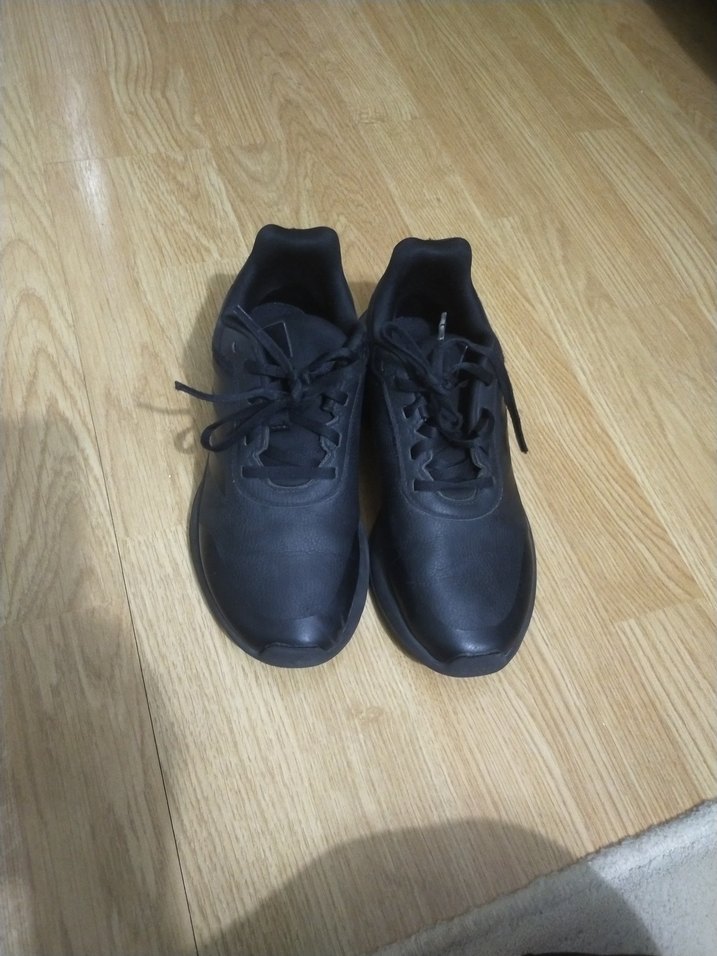 Siyah renkte, lastik malzemeden yapılmış, kadın spor ayakkabısı.