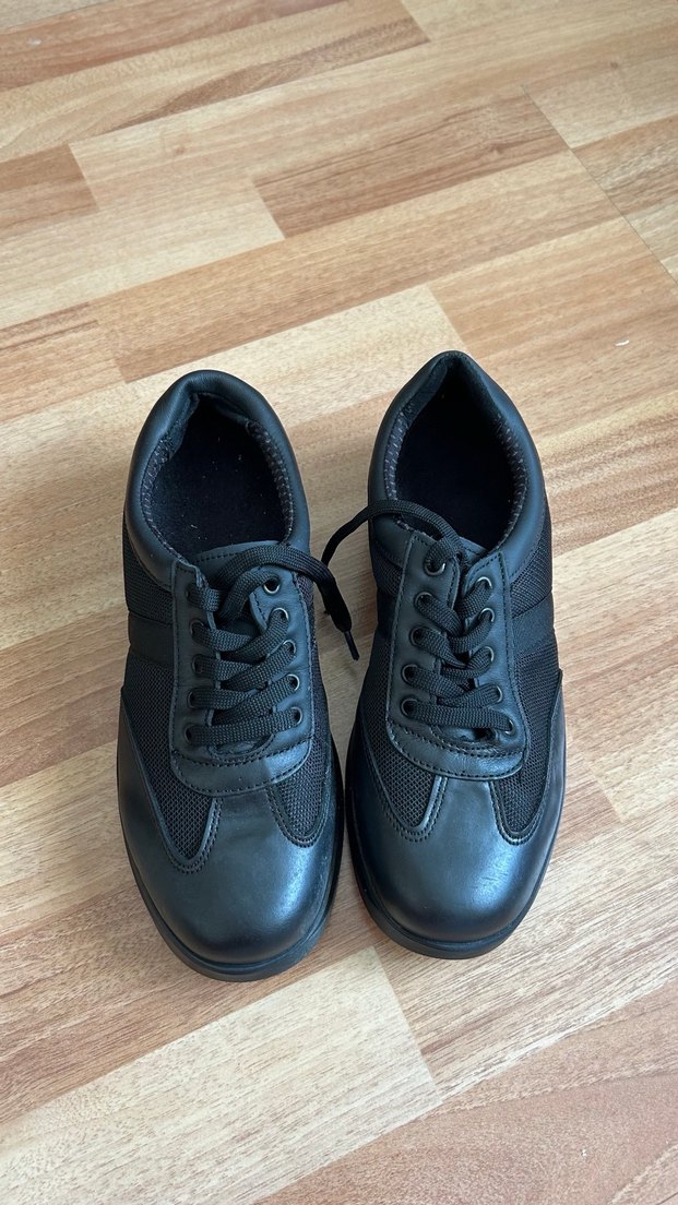 Kadın spor ayakkabıları için koyu siyah renkte, gotik tarzda bağcıklar. Sıfır kullanılmadı tabanı kaymaz
