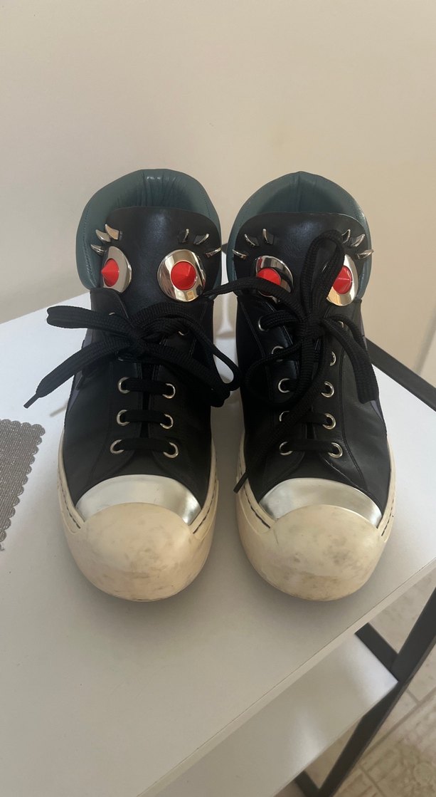metal çivili detaylara sahip siyah kadın spor ayakkabısı, bilekli Fendi ayakkabı.