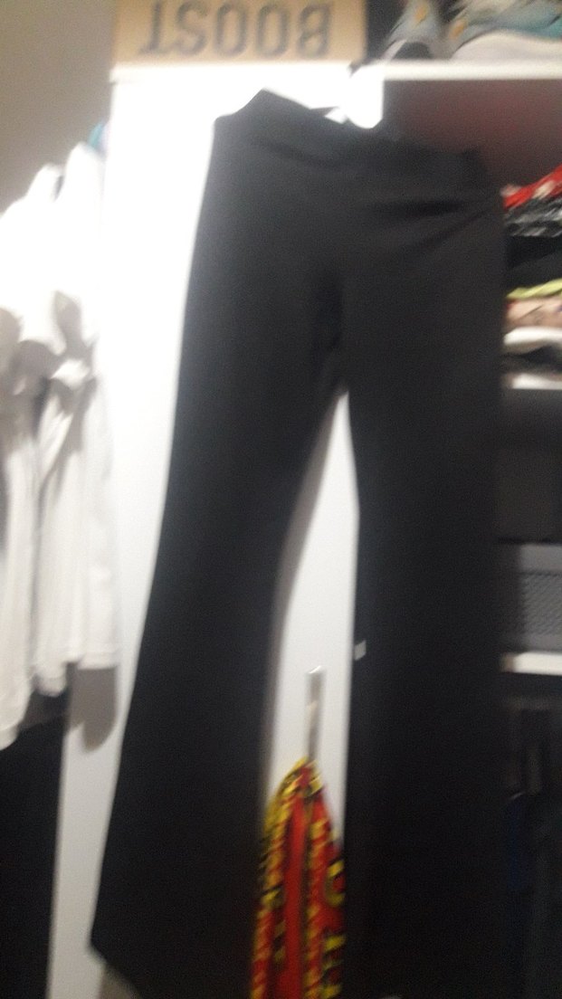 Siyah, kesik detaylı, midi boy, dar kesim kadın spor pantolonu, sentetik kumaştan üretilmiştir.