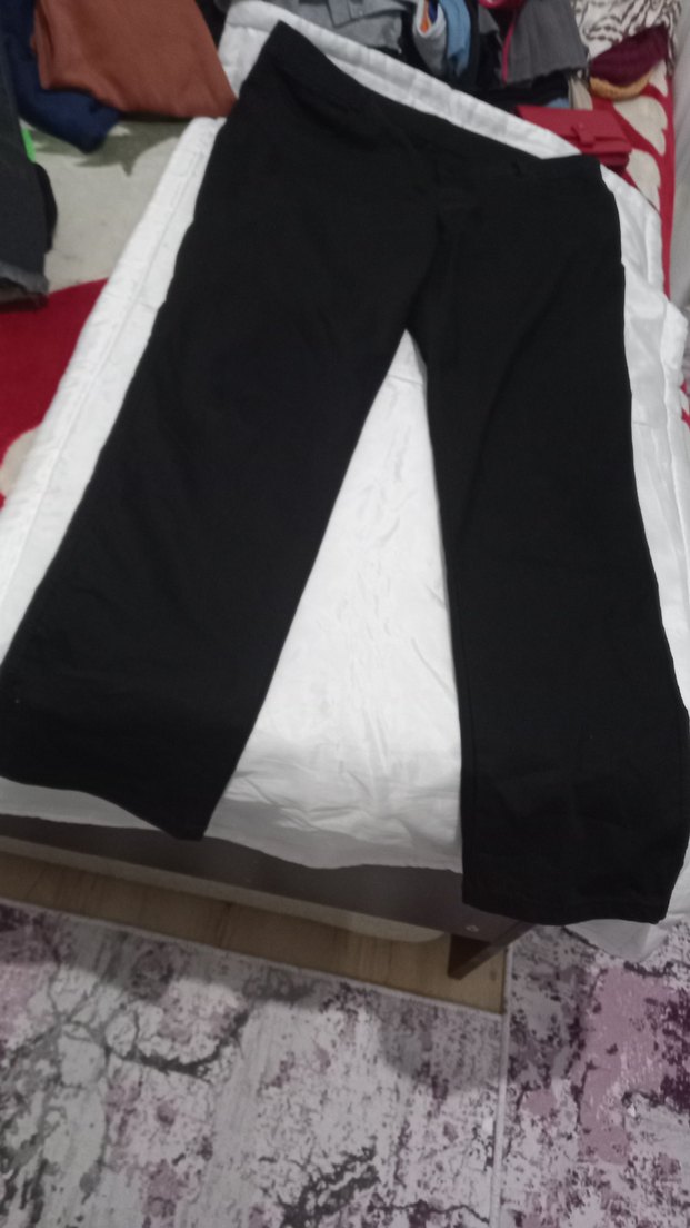 Siyah renkli, sentetik kumaştan yapılmış, normal midi boyunda ve yapışkan bantlı kadın spor kumaş pantolon.