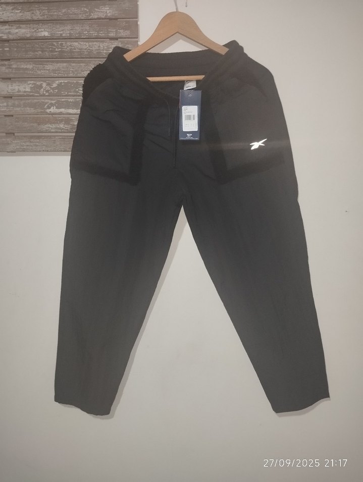 Siyah renkli, regular fit ve normal boyda, kemerli erkek spor pantolonu. Hafif tüylü kumaştan, sportif sokak stili için uygun.