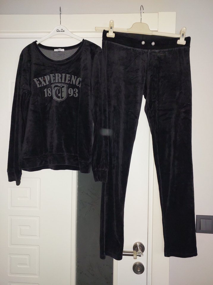 Siyah kadın spor takımı, rahat kesim, uzun kollu ve bisiklet yaka. Yumuşak polar kumaştan, "EXPERIENG" baskılı, günlük kullanıma uygun şık bir model. marka temsilidir herşey fotoğrafta mevcut
