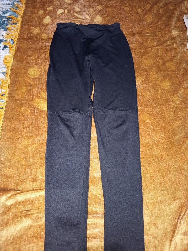 Siyah, sentetik kumaştan, normal boy ve dar kesim kadın spor tayt. Spor ve günlük rahat stil için uygun, zahmetsiz şıklık sunar.