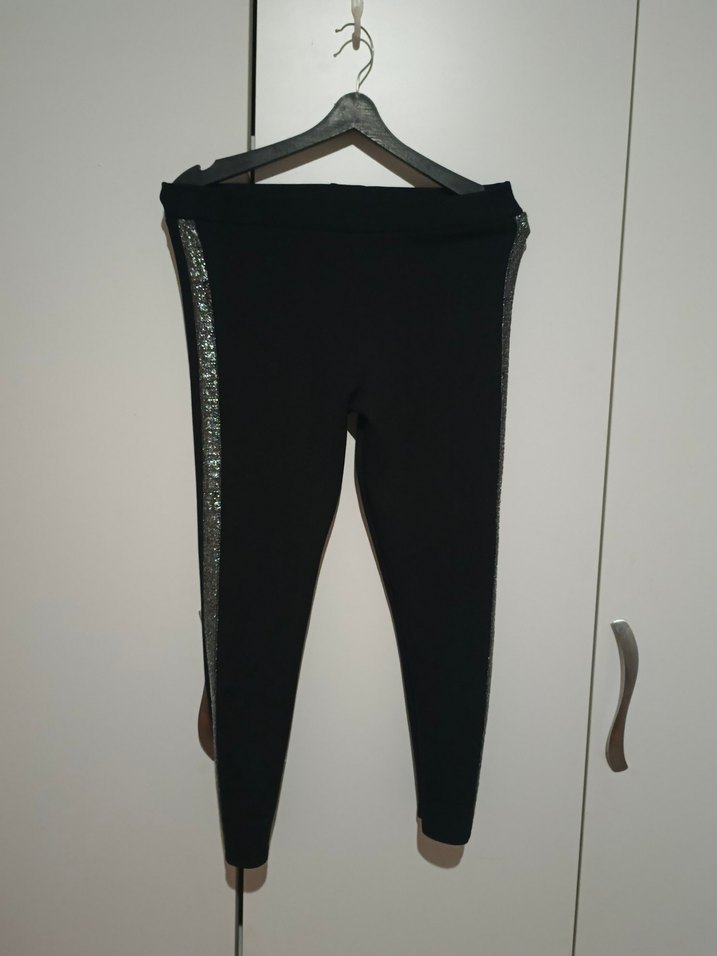 Siyah, elastik bel bantlı, sentetik kumaştan yapılmış, spor ve sokak giyimi için uygun dar kesim tayt.