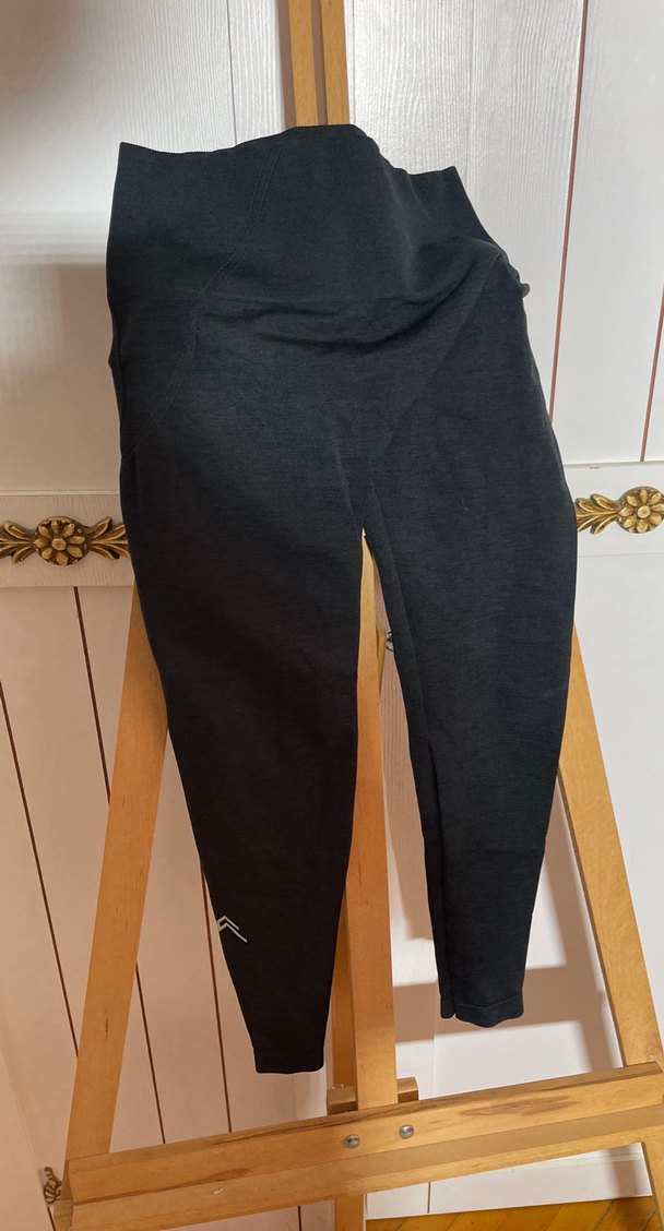 Yumuşak ve sıcak kumaştan siyah, dar kesim kadın tayt. Velcro detaylı, midi boy, spor ve sokak stili için uygun.