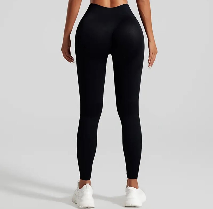 Düz siyah, vücuda oturan kadın taytı, yumuşak sentetik kumaştan üretilmiş, spor ve sokak stili için zahmetsiz şıklık sunar.