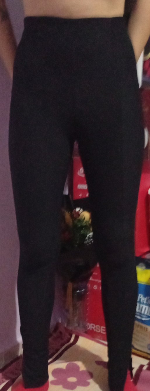 Siyah, elastik bel bantlı, yumuşak ve sıcak kumaştan yapılmış kadın spor tayt şeklinde pantolon, spor ve günlük sokak stiline uygundur.
