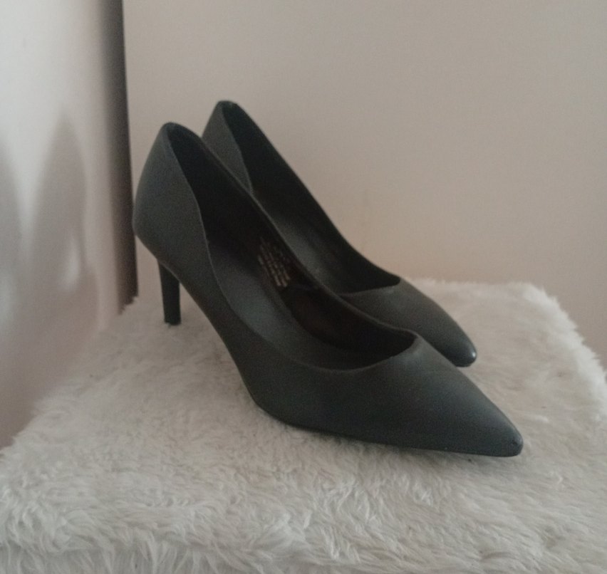 Siyah renkte, sivri burunlu ve ince topuklu kadın stilettolar. Düz kauçuk malzemeden üretilmiş, klasik ve zarif ofis stiline uygun. Rahat şıklık sunar.