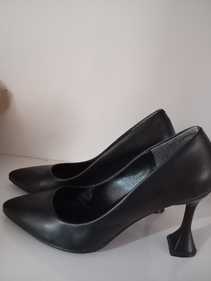 Ofis için uygun, minimalist ve klasik tasarıma sahip siyah kadın stiletto ayakkabılar. Kauçuk topuk ve desensiz koyu renk ile zahmetsiz şıklık sunar.