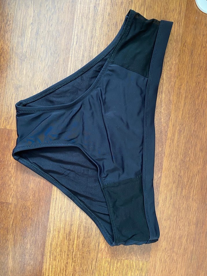 Siyah, fitted kesim ve strappy detaylı bikini altı, outdoor kullanıma uygun, zahmetsiz şıklık sunar. 42 beden çok az kullandım.