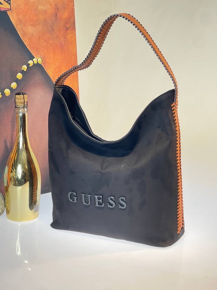Siyah Kadın Süet Guess Fermuarlı Çanta