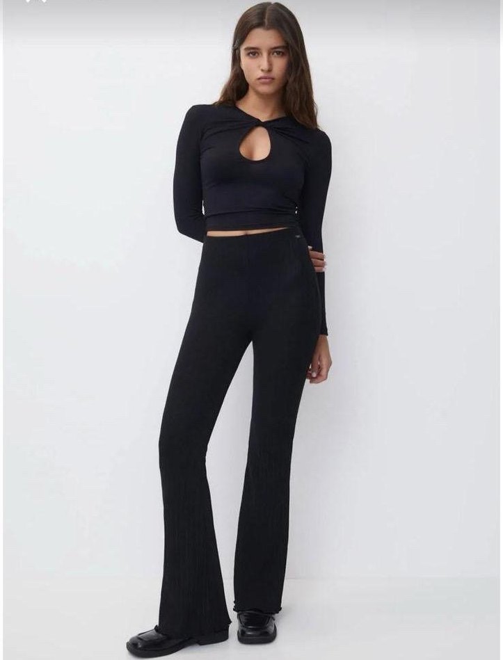 Siyah süet kumaştan, normal boy ve ispanyol paça kesim tayt son fiyat 200 tl dir