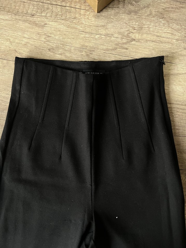 Siyah süet kumaştan, pile detaylı, midi boyda, minimal ve düz kesim kadın pantolon. Ofis kullanımı için uygundur.