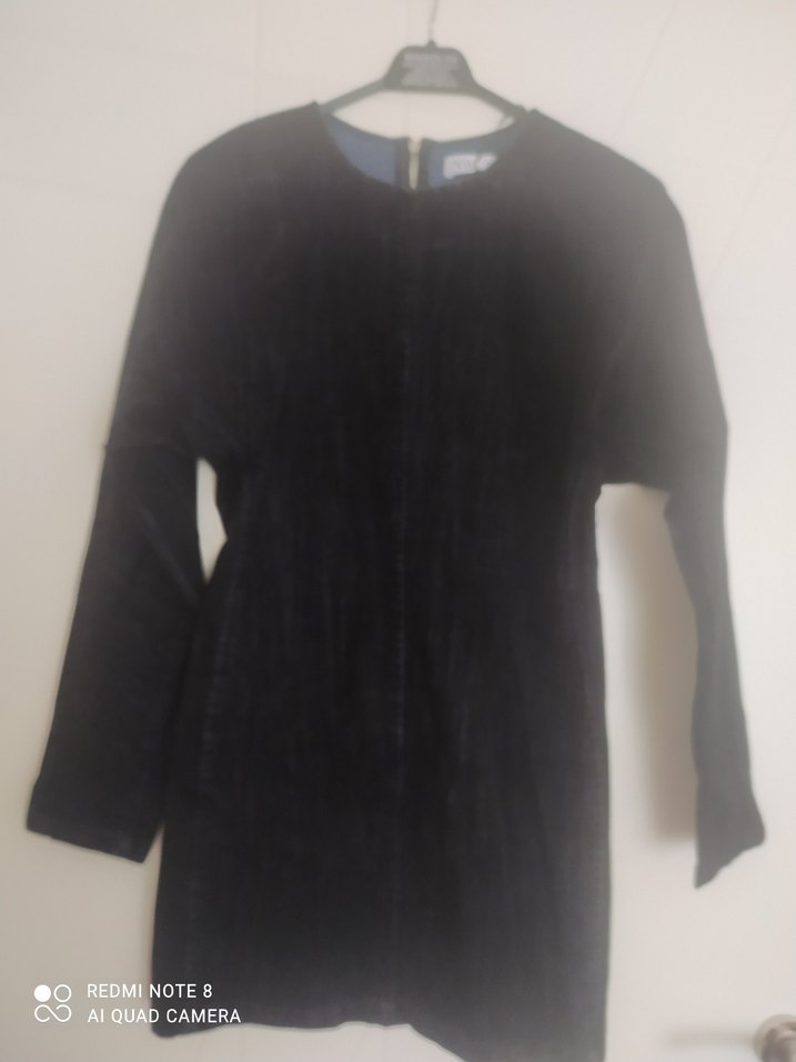 Siyah süet kumaştan, uzun kollu ve bisiklet yaka olan bu elbise, pilili detaylara ve midi boy uzunluğa sahiptir. Günlük kullanıma uygun minimalist gotik tarzda.