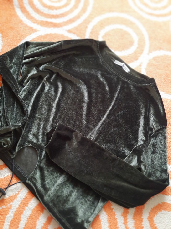 Siyah, süet kumaştan, uzun kollu ve salaş kesim kadın kazağı. Rahat ve günlük kullanıma uygun, sade ve şık bir tasarıma sahiptir.