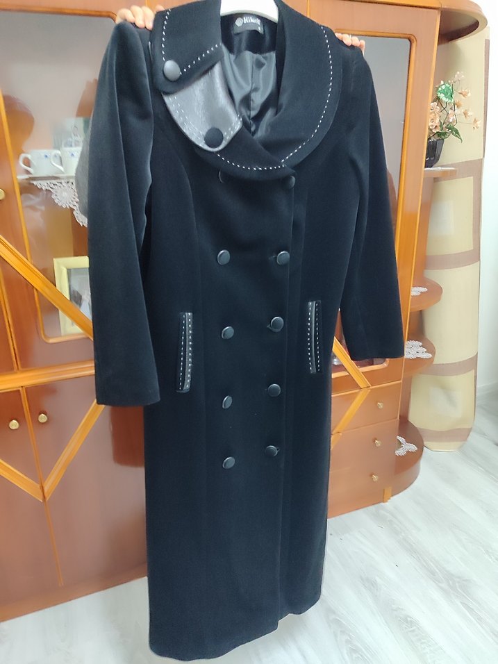 Siyah süet kaşe kumaştan uzun, düğmeli kadın kaban. Notlu yaka ve işlemeli detaylara sahip, klasik iş tarzına uygun uzun kollu ve regular fit.Hiç kullanılmadı dokusu şahane, en ufak kusuru yok. giyince rahat ve duruşu çok güzel. hediye alındı bedeni uymadı sıfır sayılır ama etiketi yok. 42 bedene uyumlu 160 boyu olana ayak bileklerinde oluyor.beden farklı yazıyor fakat 42 bedene tam olur.
