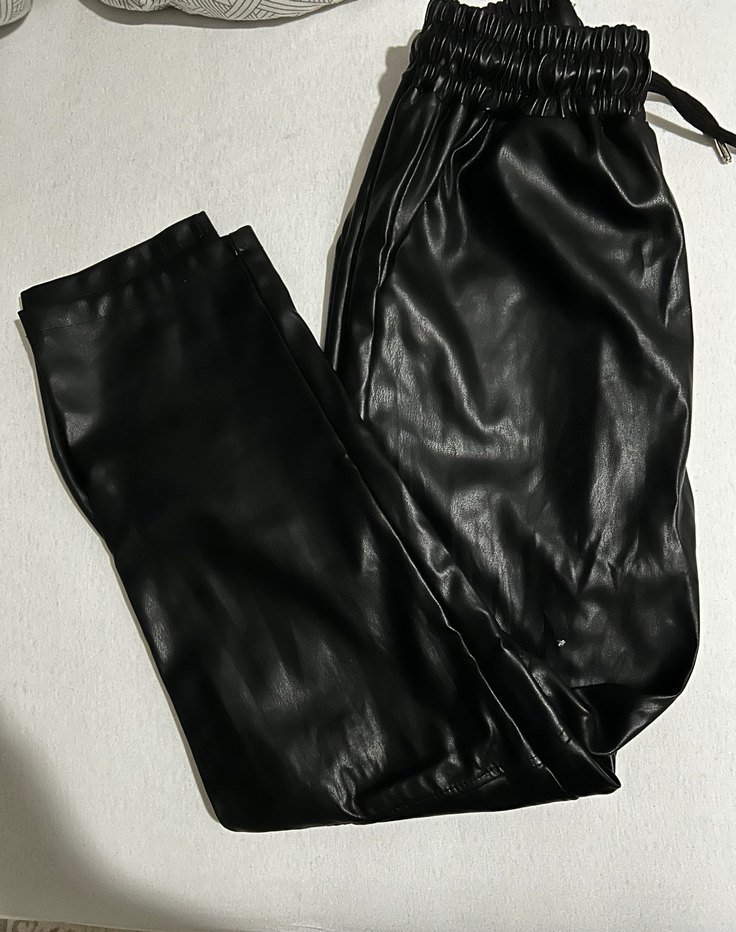 Siyah Kadın suni Deri Pantolon