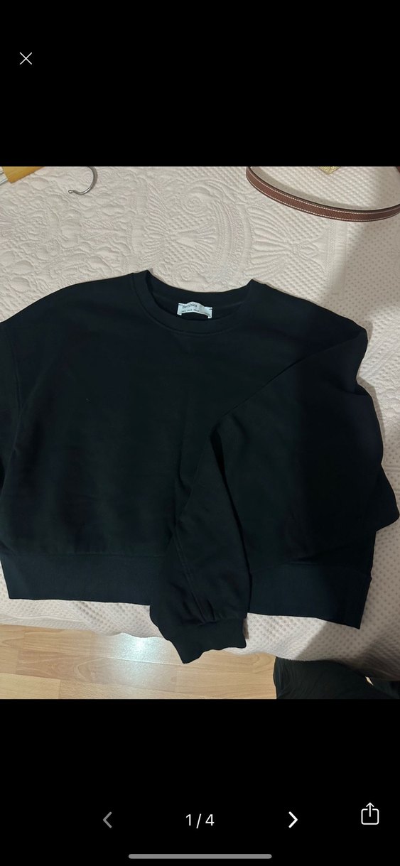 Siyah, bisiklet yaka ve uzun kollu kadın sweatshirtü. Rahat kesim ve normal midi boyda, yumuşak ve sıcak kumaştan, günlük kullanım için uygundur.