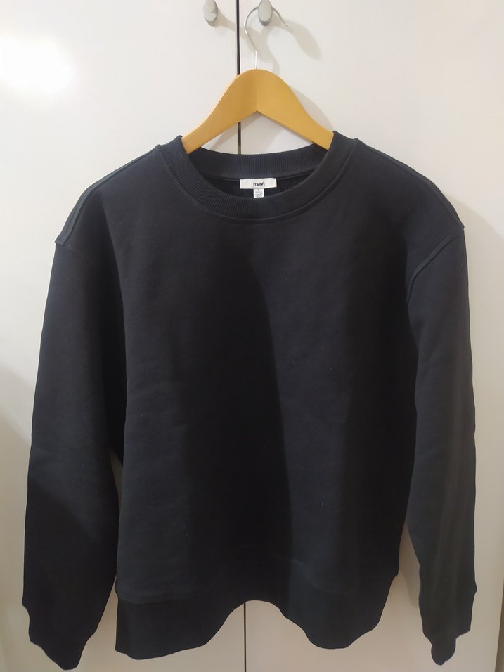 Siyah renkli, yuvarlak yaka ve uzun kollu kadın sweatshirtü. Rahat kesimi ve yumuşak, sıcak dokusuyla günlük kullanıma uygundur. S beden ama oversize kesim