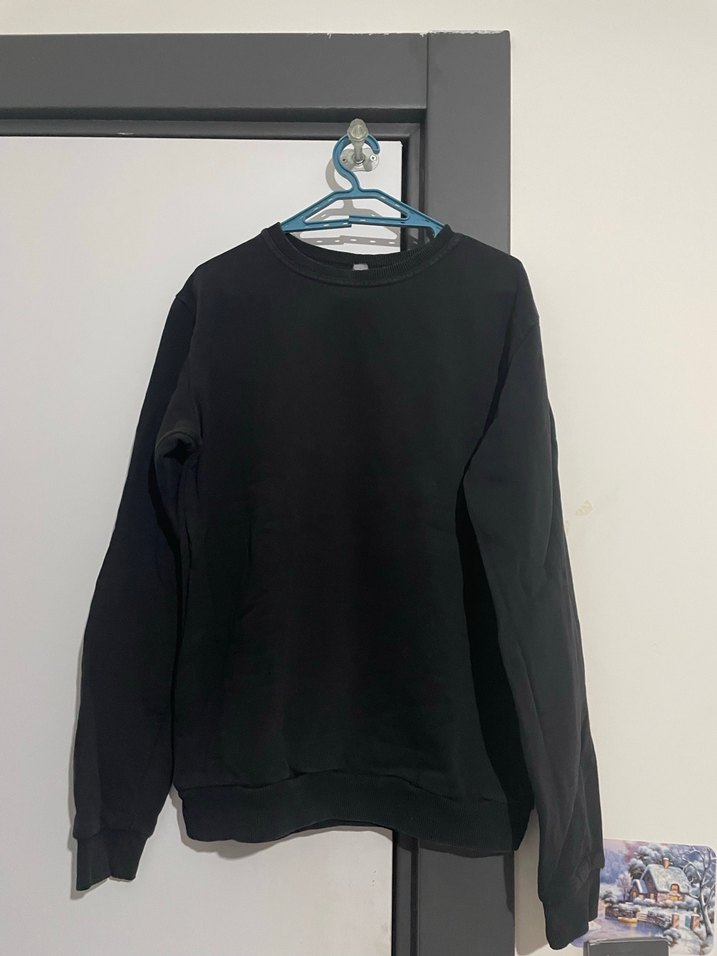 Siyah renkte, uzun kollu ve yuvarlak yaka kadın sweatshirtü. Rahat kesimi ve normal boyuyla günlük kullanıma uygun, yumuşak ve sıcak kumaştan üretilmiştir.