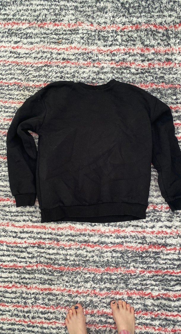 Siyah renkli, uzun kollu kadın sweatshirtü. Salaş kesimi ve kürklü detaylarıyla rahat ve sıcak bir dokusu vardır.
