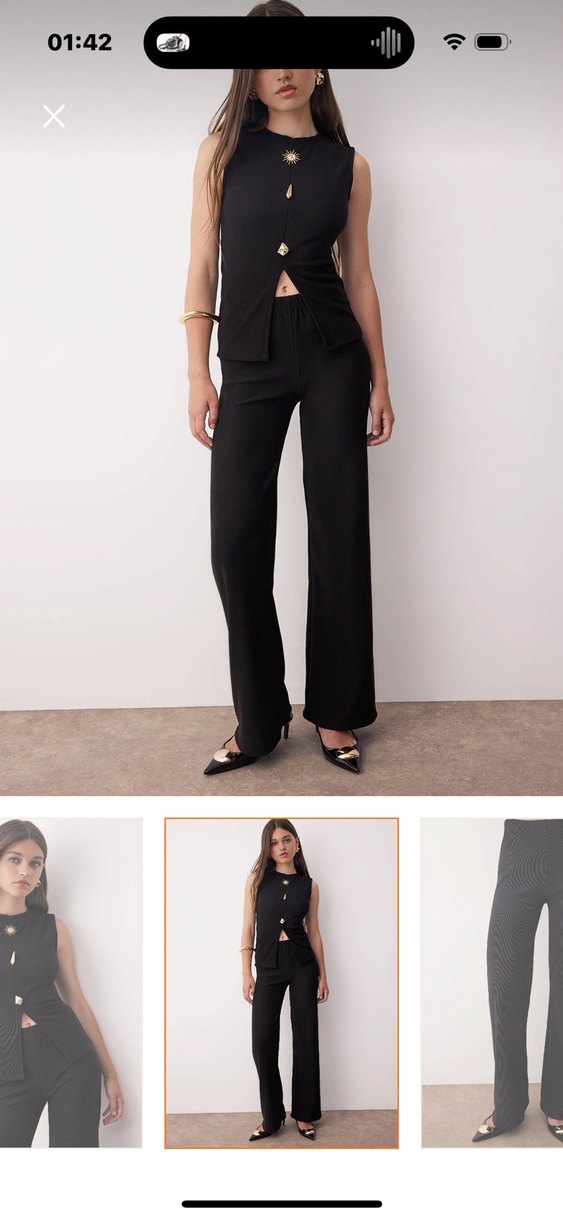 Siyah, ipeksi dokulu kadın kumaş takım normal boy ve regular fit kesime sahiptir. Ofis için şık, çağdaş ve zahmetsiz şıklık sunar. Ürün hiç giyilmedi