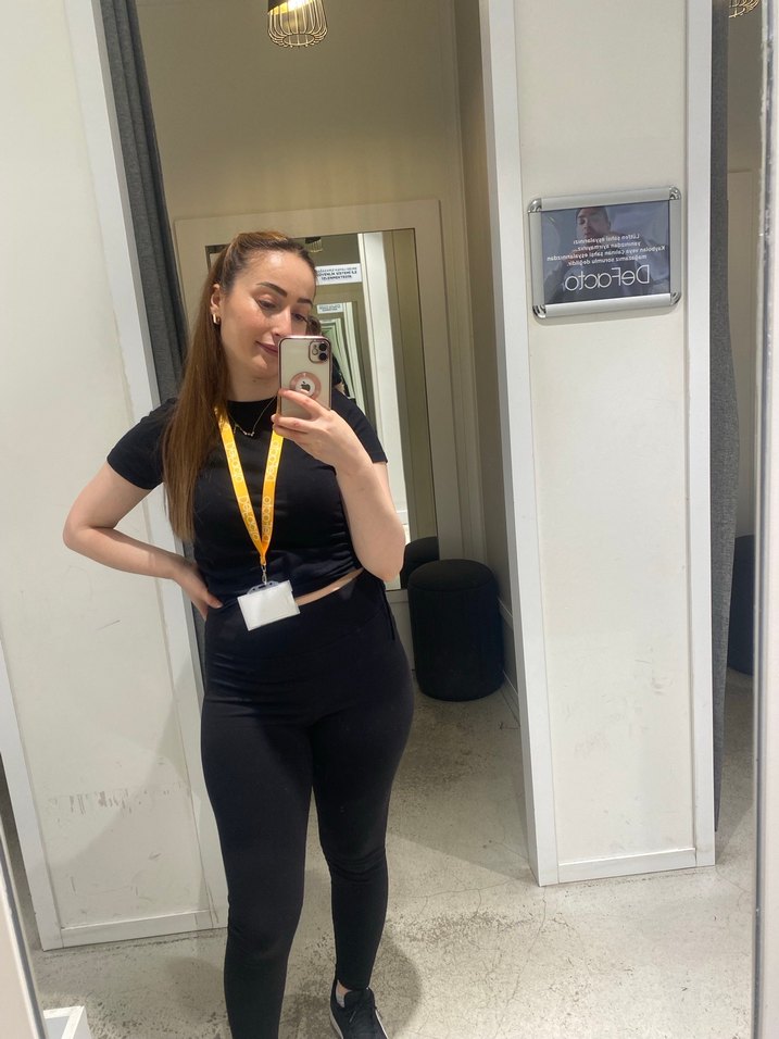 Siyah renkli, kısa kollu ve yakalı kadın eşofman takımı, ofis için uygun şık ve rahat bir görünüm sunar. Midi boy ve baskılı deseniyle spor şıklığı sağlar.