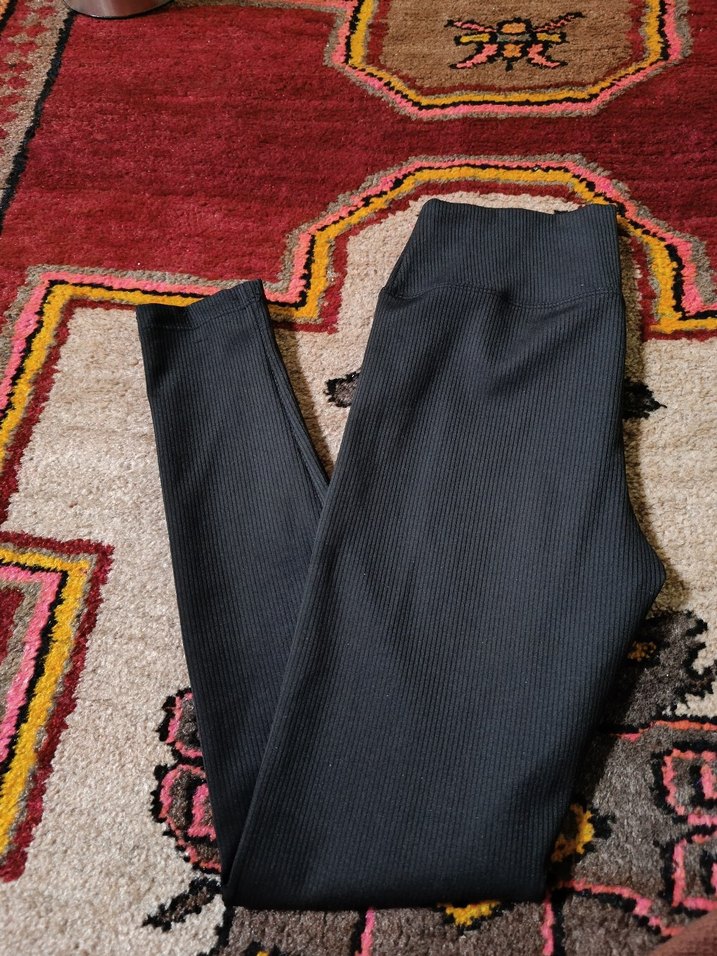 , siyah renkli, uzun boy ve dar kesim kadın tayt. Pürüzsüz sentetik kumaştan, günlük ve spor tarzda kullanıma uygun.