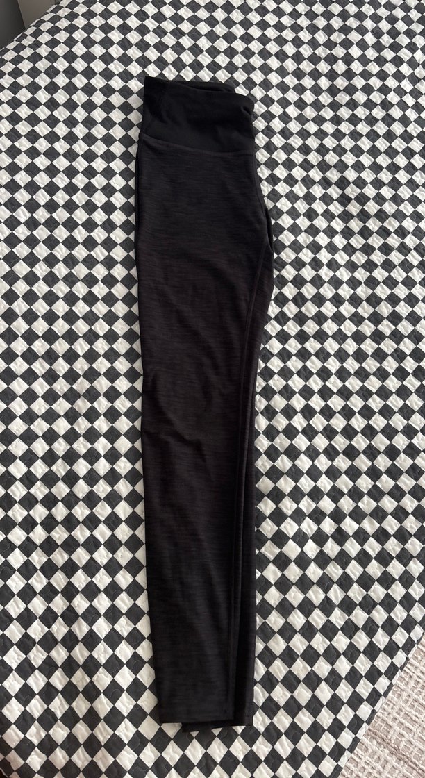 Siyah gri cizgi detaylı hm spor sentetik kumaştan yapılmış, vücuda oturan kadın tayt. Günlük kullanım için uygun, normcore ve şık tarzda. Hiçbir kusuru yok