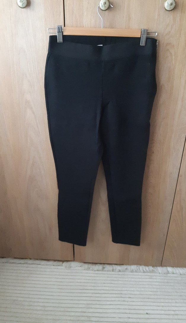Kadınlar için siyah, vücuda oturan tayt pantolon. Çok kalın likralı pamuklu kumastir, beli kemer detayli, GAP marka XS bedendir ancak 36-38 beden uyumludur. Yandan Fermuarlidir