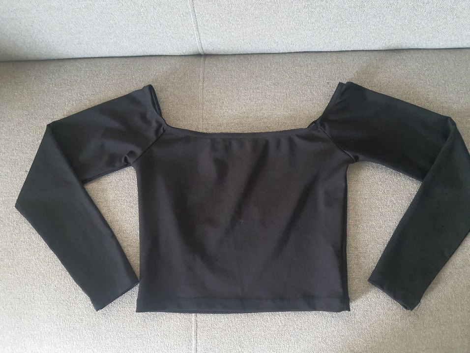 Siyah, tek renk, uzun kollu, tekne yaka ve vücuda oturan kesime sahip kadın bluz. Minimalist gotik tarzda, günlük kullanıma uygun.