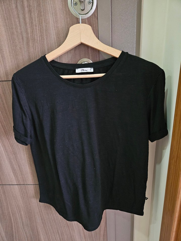 Siyah kumaştan, yuvarlak yaka ve kısa kollu kadın tişörtüdür. Salaş kesimi ve midi boyuyla rahat ve şık bir görünüm sunar. Desensiz, günlük kullanım için uygundur.