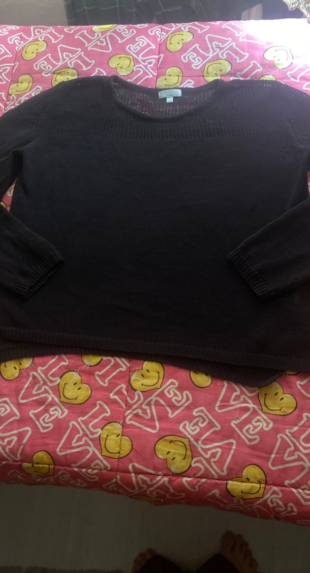 Siyah renkli, yuvarlak yakalı ve uzun kollu, bol kesim triko kazak. Rahat ve günlük kullanıma uygun.