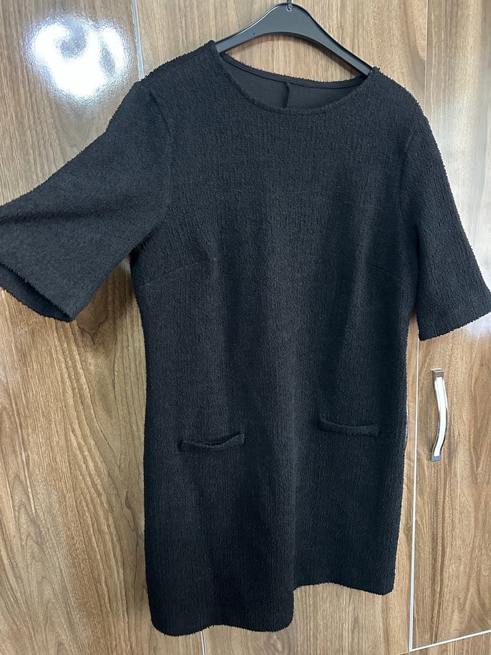 Gri renkte, yuvarlak yakalı ve kısa kollu triko midi elbise. Rahat kesimli, iki küçük ön cepli ve yumuşak sentetik kumaştan üretilmiştir. Günlük kullanım için uygundur.