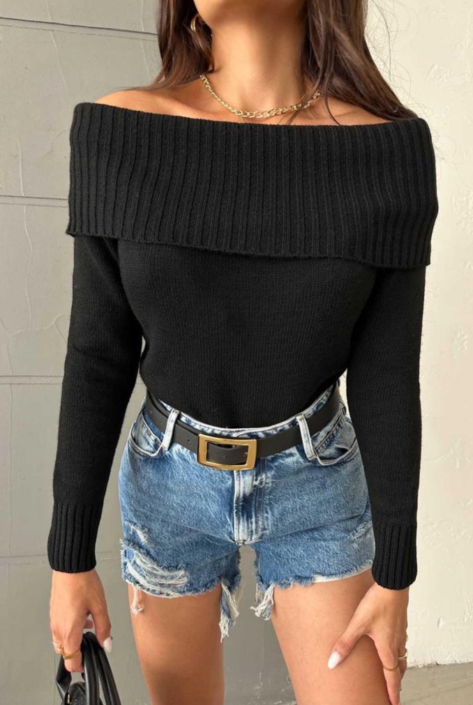 Siyah Kadın Triko Uzun Kollu Bluz