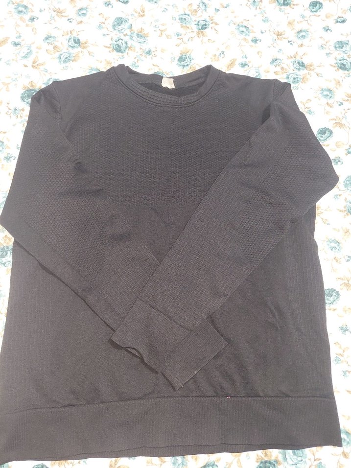 Siyah renkte, uzun kollu, yuvarlak yaka ve bol kesim kadın triko kazak. Keten dokumasından örülmüş, günlük kullanıma uygun rahat bir model. İçi havlu genis beden kolundaki detaya bakın defolu harici yeni gibidir