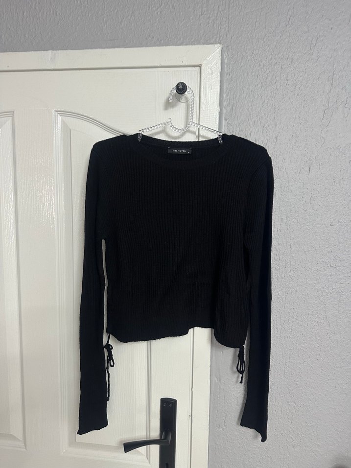 Siyah triko kumaştan, uzun kollu ve yuvarlak yakalı, dar kesim kadın kazak. Minimalist ve gotik tarzda, rahat kullanıma uygun.